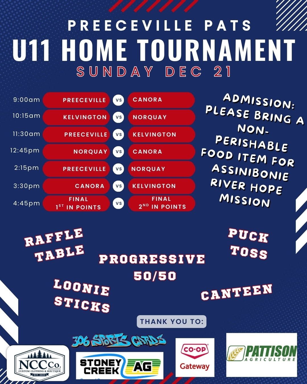 December 21 @ 8:00 am - 5:00 pm U11 Tournament Preeceville Rink 651 First St NW, preeceville, sask, Canada